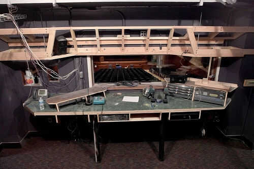 antes de la alfombra, pegué el debajo de la mesa consola con negro spraypaint y tuve que reiniciar mis patas de la mesa (3 pulgadas PVC otra vez) porque la gente de la alfombra los quité para poner la alfombra...