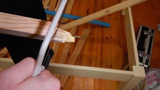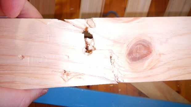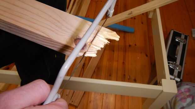 La viga principal se divide en dos partes. En realidad el rayo fue rasgado en dos partes así que tuve que usar mi caladora pequeña para proporcionar un buen calce para estas dos partes.