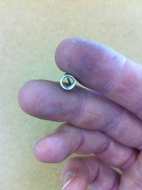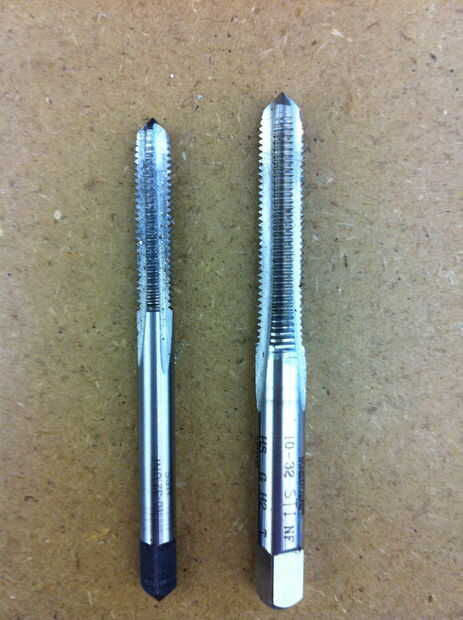 En las dos primeras fotos, puedes ver el inerte sí mismo. La siguiente foto muestra la diferencia entre el tamaño de la toma que creó el original rosca 10-32 que estamos tratando de reparar y el grifo que se utilizará para crear el gran agujero para insertar el inserto de acero roscado en. Estos dos grifos tienen exactamente la misma echada, o en otras palabras, cortan el mismo número de hilos por pulgada. La única diferencia es el tamaño del agujero que cortará los hilos en. La llave más grande vino con el kit de inserto de reparación de hilo que compré y tiene un tamaño exactamente la pieza que estoy usando para reparar un agujero del tamaño de 10-32. Llego a utilizar un kit hecho por una compañía llamada Helicoil, pero hay un número de kits de diferentes fuentes que trabajan por el mismo principio.