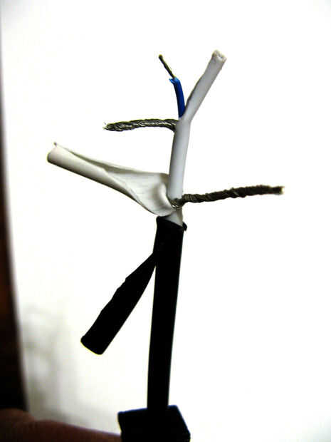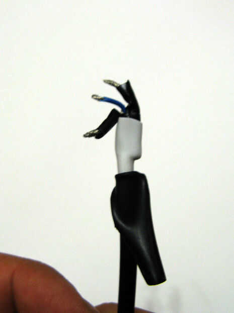 Tuerza los cables de cada capa y aislar con cinta. Compruebe a qué pin debe ir cada cable. Intentar reorganizar los tres cables que va a ser fácil soldar nuevamente en el adaptador, y luego bloquear todo lo con cinta.