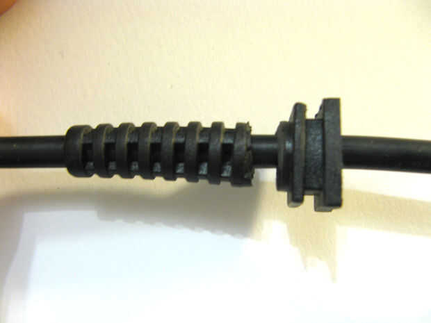 No tire el muelle de plástico! Prueba a quitar el cable roto de dentro de la primavera y para ponerlo detrás en el cable restante y buena. He tenido que cortar el resorte en tres partes sobre la causa que fue soldado al cable, sin embargo, ha sido útil.