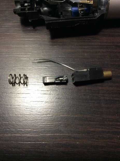 Preste atención al paso siguiente porque hay un pequeño pedazo de metal con una varilla que une al centro del gatillo.