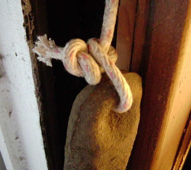 Mayoría de la gente desactiva los sistemas de peso mediante la reducción o simplemente no cambiar las cuerdas como ha fallado y recurrió a mantener las ventanas abiertas cuando sea necesario. Sin embargo, algunas personas realmente abrió los marcos y quitar las pesas (o aislamiento de la ventana o para convertir los pesos para chatarra), por lo que los pesos pueden ser desaparecidos. Si se han ido de una ventana, son probablemente desaparecidos de todos ellos. Usted puede encontrar reemplazos vintage en ebay (para saber el tamaño que necesita, pesan la hoja antes de colocarlo, se necesita dos pesos que son cada uno la mitad del peso total de la hoja) o reemplazar el peso y polea con resorte equilibra.