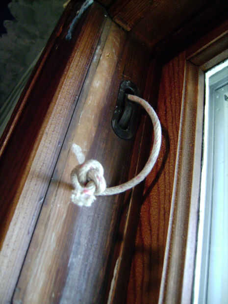 Sin embargo, es poco probable, use ese gancho de alambre largo para pescar por allí arriba y tire de la cuerda a través de.