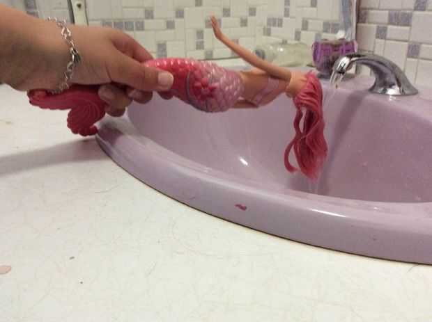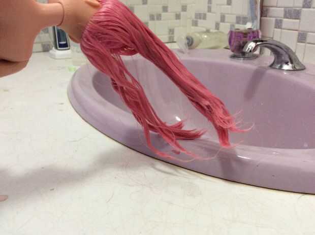 Paso 3: Lavar el cabello de la Barbie con acondicionador
