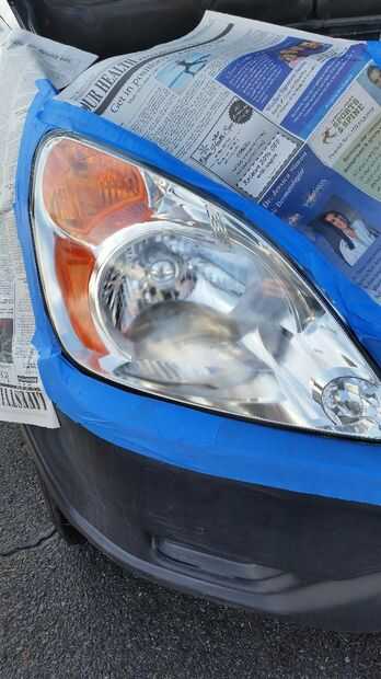 Cinta el área inmediatamente alrededor de sus lentes de Faro. Esto protege las superficies pintadas y alrededores de lijado y después del rociado excesivo.