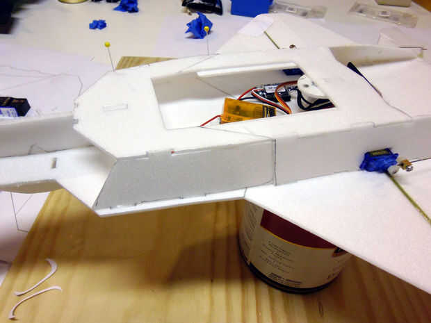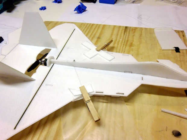 Además de pernos me parece que usando alfileres de ropa ayuda a mantener piezas (ala) alineados durante el pegamento. Una cosa para recordar cuando se utiliza abrazaderas de todo tipo con espuma de esa espuma espuma abolladuras REAL y fácilmente 3mm abolladuras más fácilmente que otros. SIEMPRE utilizo pedazos de desecho de la espuma con pinzas para las piezas de chatarra las abolladuras. También utilizo un papel de cera debajo de los restos para evitar cualquier exceso de pegamento pegado al plano.