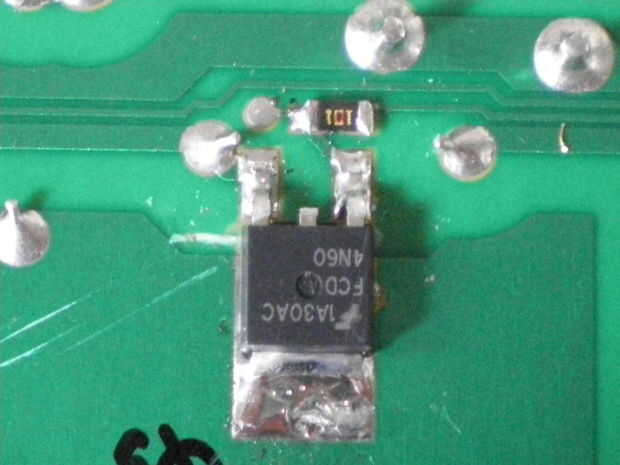 Algunos de los mosfets de potencia tienen una resistencias de 100 ohmios a través de sus puertas. Estas resistencias a veces también saltar con el mosfet e ir a circuito abierto. Son cerca de lo mosfet, generalmente justo en frente. Compruebe todas estas resistencias de 100 ohmios (marcado ' 101') del siguiente modo: después de sustituir el mosfet quemado, conecte las puntas DMM en ambos extremos de la resistencia y buscar una lectura de sobre 0.100 o cerca. Si no hay ninguna lectura, el resistor es de circuito abierto y debe cambiarse. Tómate tu tiempo porque si pierdes uno defectuoso, mosfet saltar al instante otra vez cuando se enciende el tablero.