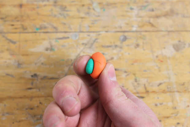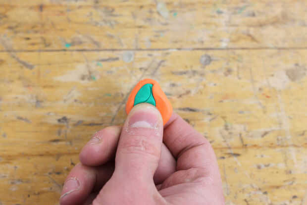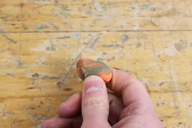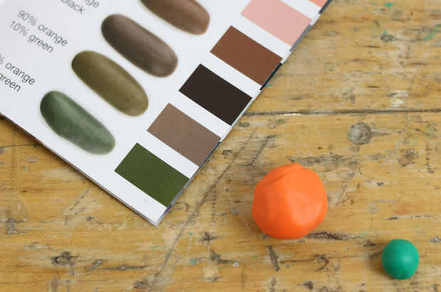 Decidí ir 90% naranja y verde 10%. Tomar las cantidades porcentuales de los minipacks y mezclarlos juntos en los dedos hasta que el color es sólido en todo.