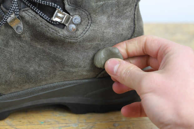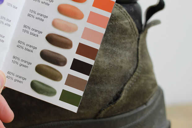 Puede que necesite agregar algunas cantidades más pequeñas de colores extras para alcanzar su sombra específica. Con este hack tuve que añadir un poco más verde y un poco de negro. Cuando agregar más color hacerlo en pequeñas cantidades y constantemente mantener comprobando el color contra la bota. Es más fácil seguir añadiendo pequeñas cantidades hasta que está bien de ir demasiado lejos y tener que hacer para.