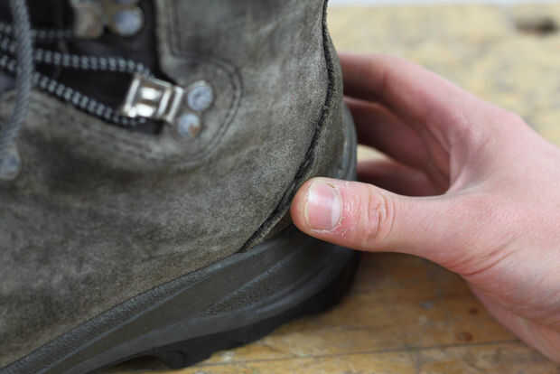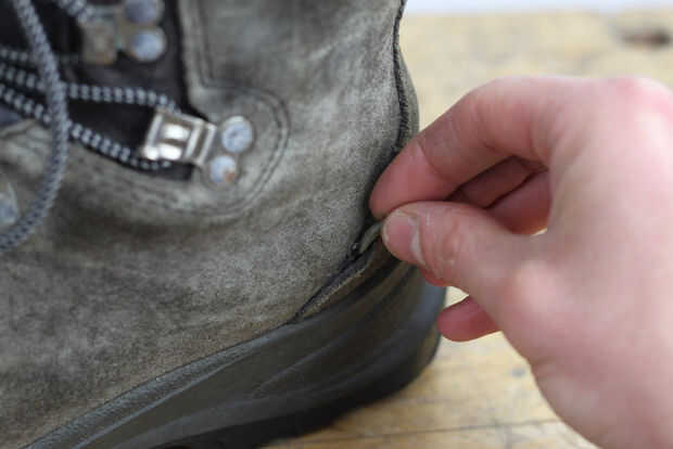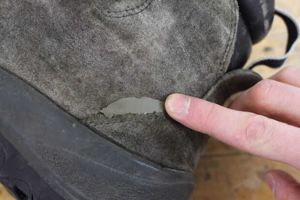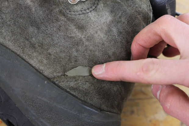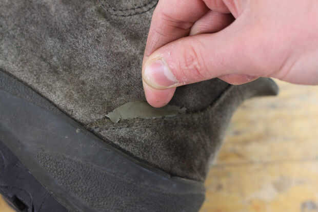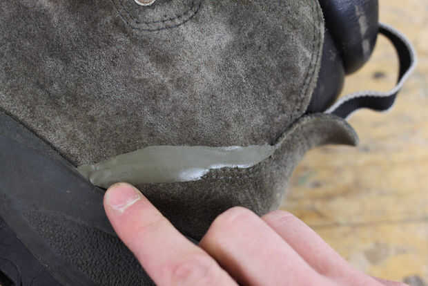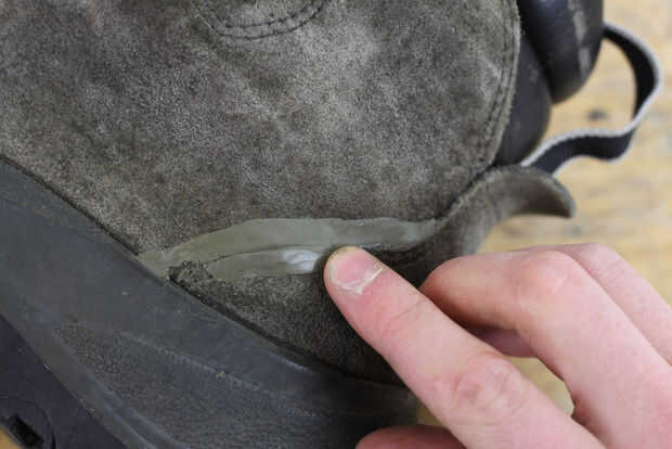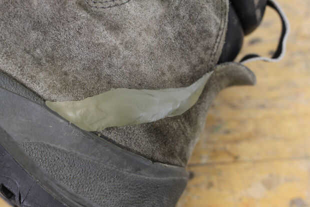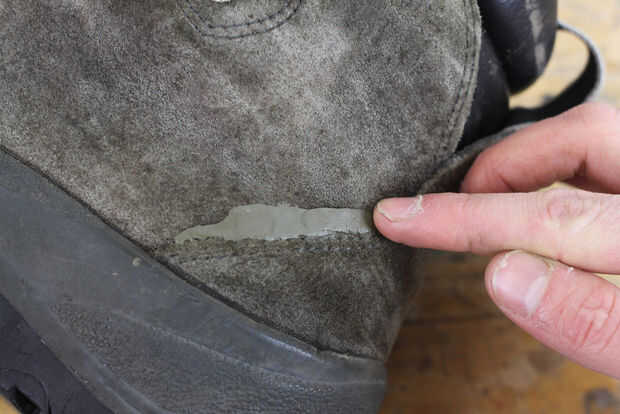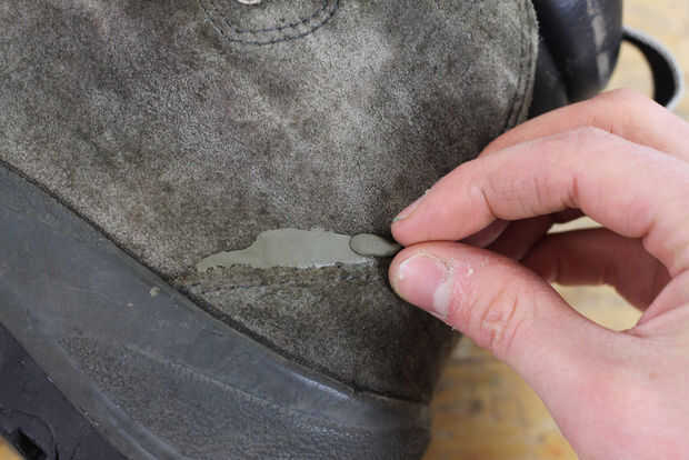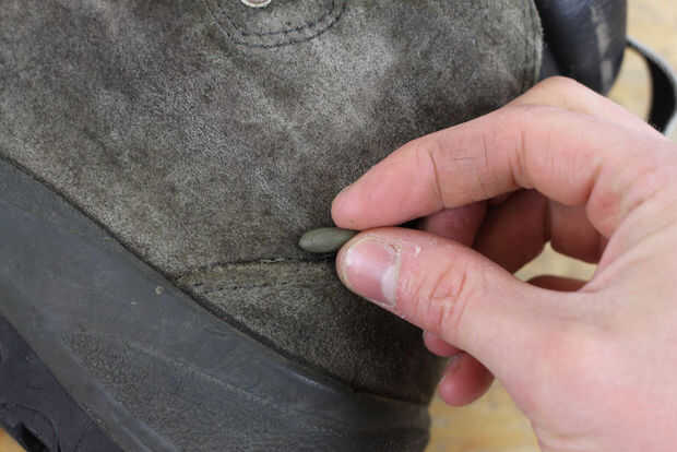 Presione y frote el sugru en la tela de la bota. Empezar por crear una capa de estaño con una buena adhesión y trabajo en engrosamiento más adelante.