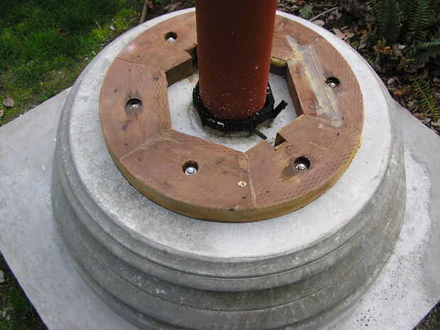 Después de que el concreto fue vertido tenía que colocar los anillos de madera tratados que se use un clavo oblicuo las columnas a través de un anillo idéntico en cada columna.