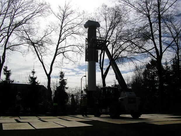 Para bajar las columnas reconstruidas y repintadas encima del poste de hierro en su centro que creé esto rellenado apretón el arnés.