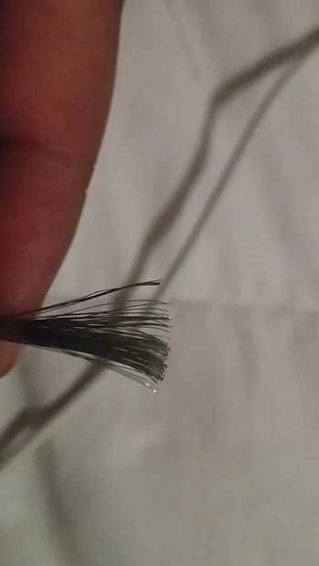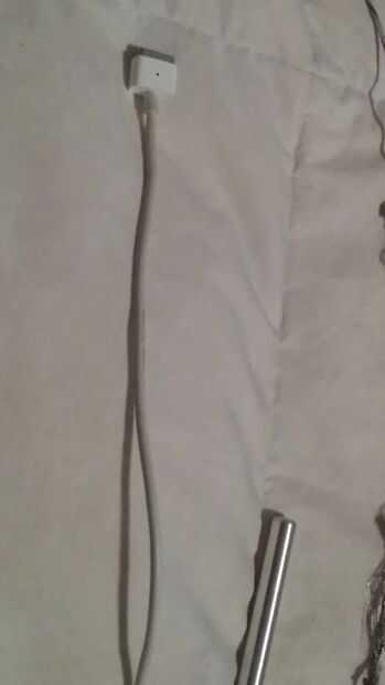 Aquí es donde tienes que tener cuidado. Ya cometí mi error y no quiero cometer el mismo error. Utilizando el cortador de alambre, corte el MagSafe 2 de 7 pulgadas o más desde el conector de. En el cargador cortado aproximadamente 2 pulgadas desde el conector. Como usted note que una vez cortado y había pelado del aislamiento de goma, verá un alambre de plata envuelto o torcido alrededor otro alambre plástico. También quiere deshacer Ravel el alambre de plata en Faja muy cuidadosamente el aislante plástico por el alambre en el medio. Usted también notará que los cables después de remover el aislamiento no son muy diferentes pero preocupación. Hay todo lo no necesario necesidad de cortar cualquiera del alambre de plata de tanto cargadores como hice yo al principio.