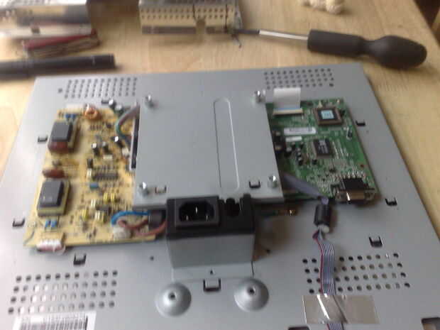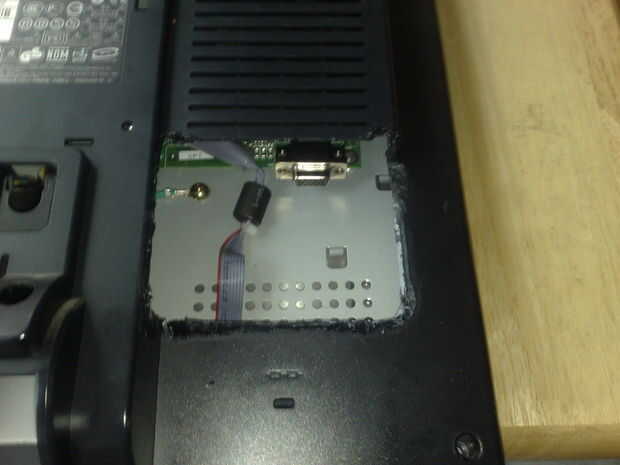 luego corté hacia fuera un poco del plástico trasero caso así que pude conectar un cable vga normal, es un poco desordenada pero es un precio pequeño a pagar para obtener a mi monitor trabajando otra vez,