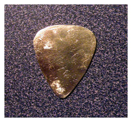 Si tratas de arreglar o conseguir creativo con su platillo y terminas odiando a lo que sale, una última opción es usar un par de cortadores de metal y hacer un montón de selecciones de la guitarra de latón. Sólo tiene que utilizar una púa de guitarra como una especie de plantilla y hacer un montón para dar a tus amigos del guitarrista o incluso venderlos en ebay. Gracias a mina para este detalle en su instructivo.