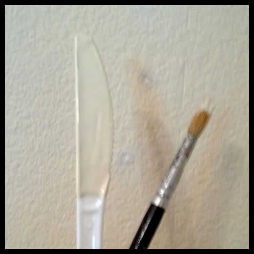 Si tienes otras marcas pequeñas en la habitación que también necesitan ser tocado para arriba, este es un buen momento para hacerlo. Si usted necesita más pintura, simplemente sumerja su cuchillo de plástico dentro del recipiente de pintura.