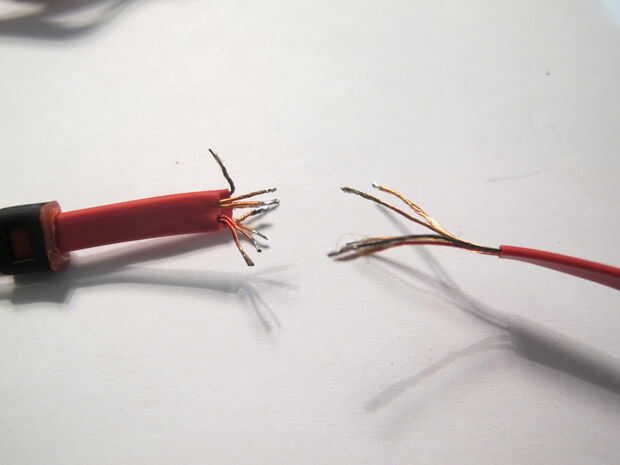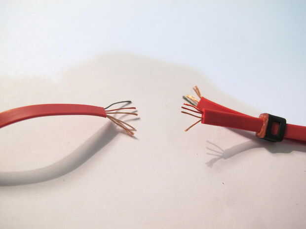 Pelar el cable y quite la pantalla de la aislamiento alrededor de los cables individuales. Esto es fácil de hacer con un encendedor.