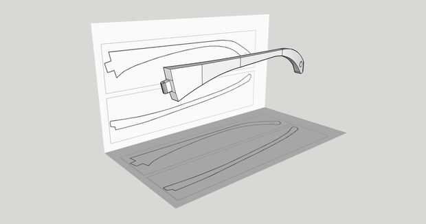 Usé Sketchup para el diseño de la falta. Importado mi dibujo para sacar perpendicular al lado y el dibujo de arriba. Entonces, utilicé la opción "intersección de caras" para producir la arrimada. Corregí algunos errores y agujeros en el diseño y he comprobado el tamaño en todas las dimensiones para asegurarse de la pieza. El segundo brazo es una vista de espejo de la primera.