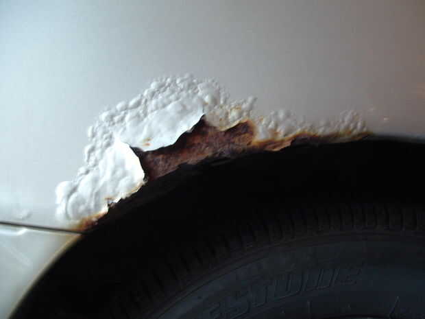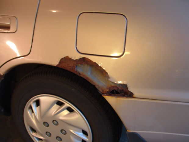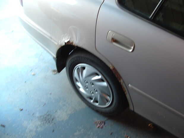 Esto es más de la cuenta de cómo conseguí eliminar / oculto / cubierta por el óxido en un 1996 Toyota Camry. El moho estaba alrededor de los pozos de rueda en ambos de los pozos de rueda trasera.