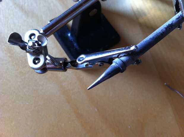 si usando una tercera mano y calor retráctil para aislar la soldadura te sugiero poner un recordatorio en una de las manos para decirle a poner el calor encogen en antes de que la soldadura. Habría mantenido olvidar no había usado este recordatorio.