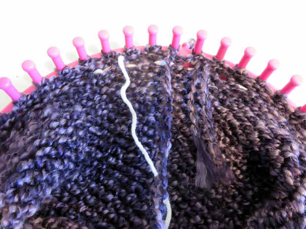 Una vez haya verificado y doble que todas las hebillas son en el telar, entonces adelante y tire el hilo contrastante a través y hacia fuera. Luego fundido en forma normal y terminar su proyecto.