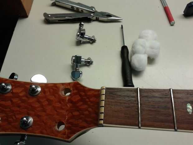 Una vez que se quitan las cuerdas, también quitar los sintonizadores que podrían obtener en la forma de sujeción. Esto se hace quitando los manguitos y los tornillos que sujetan los sintonizadores en lugar.