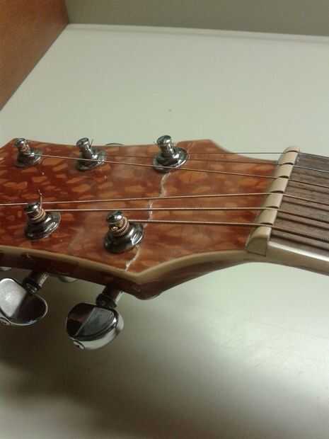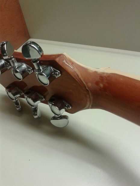 Pero hasta que puedo conseguir mis manos en mi antigua botella de poli (está en el armario de almacenamiento de mi mamá en sus apartamentos con el resto de mis cosas de herramienta) te dejarlo como es. Después de asegurarse que el pegamento fue completamente seco, me puse las cuerdas viejas y suena increible! Bueno como puede ser roto, de todos modos.