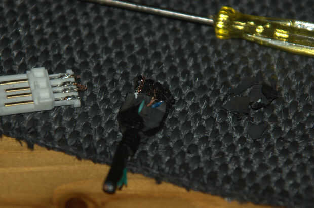 Ahora que hemos hecho que tenemos que pelar y preparar el cable que va a ser soldado al conector. Sugiero que de aquí una herramienta adecuada y mucha paciencia. Otra cosa este paso va a terminar con una carga de alambres rotos. Ver las fotos de un destino.