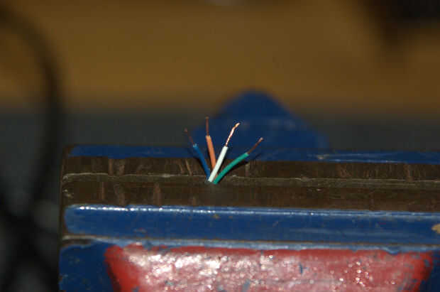 Lo de puño hacer es estañar los cables, haciéndolos mucho más fáciles de trabajar con más adelante. Para aquellos que no son conscientes de estañado es aplicar una capa delgada de soldadura en el exterior del cable. A continuación tenemos que tira hacia fuera la suciedad en el conector, utiliza mecha de soldadura, pero utilice tu feliz con cualquier método de soldadura.
