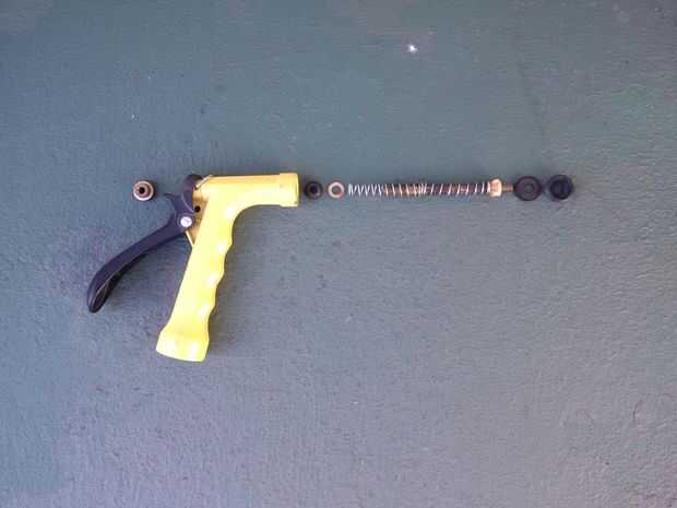 Reemplace el resorte oxidado con dos muelles de champú y montar la boquilla. Supongo que la primavera champú probablemente es acero inoxidable, tal vez uso un tiempo más largo que el original.