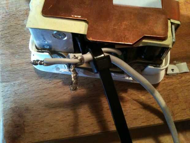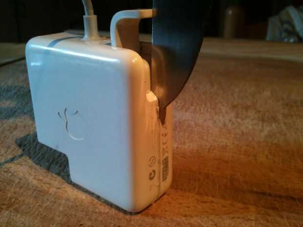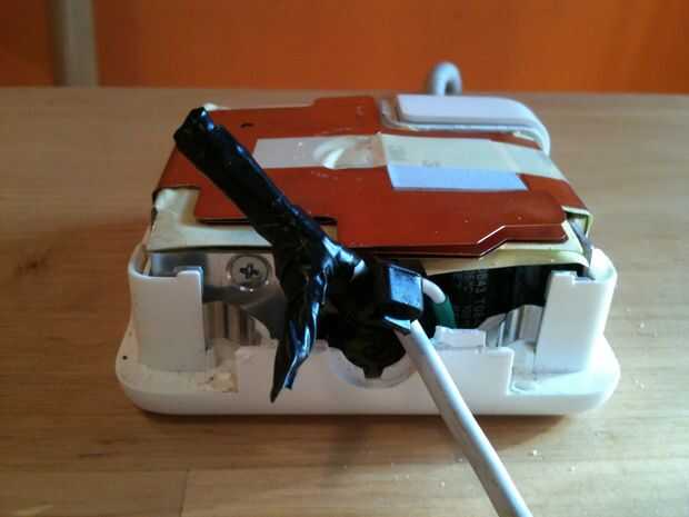 alambre está caliente y el adaptador debe utilizarse para cocinar unos huevos? ¡Vale! ¿es momento de arreglar el cable de alimentación y hacer inmediatamente ' cos sus baterías son de carga EH? Sólo algunos la cinta, una superficie plana destructible y un buen cuchillo. Sí, un buen cuchillo.