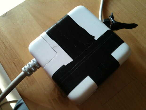 Apple realmente cayó la bola en el diseño de este cargador. El pilón cable utilizado en el diseño es simplemente débil cualquier estrés real, arrollar y tirones. Finalmente el se separa de la envoltura de goma del Conector MagSafe o el ladrillo de la