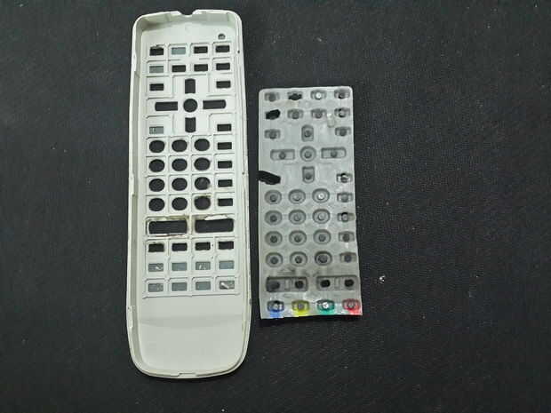 Retire las pilas del control remoto y abrirlo con cuidado y obtener un botones de goma de ella.