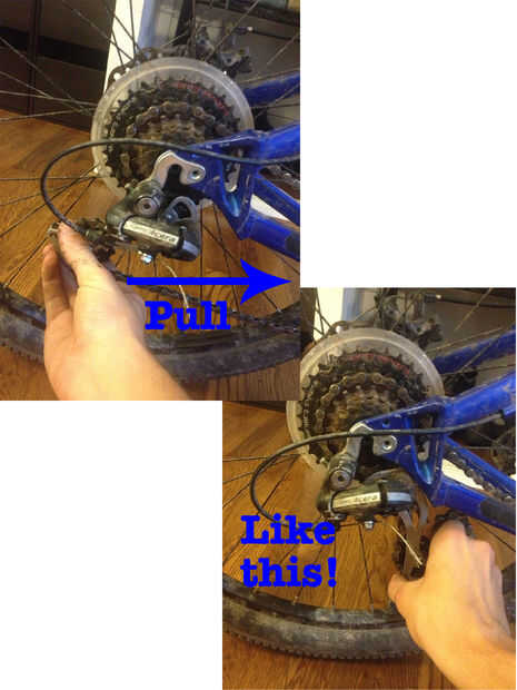 1. la cadena vuelva a colocar los engranajes y tire hacia atrás en el cambio (foto arriba).