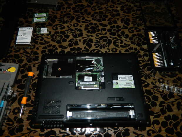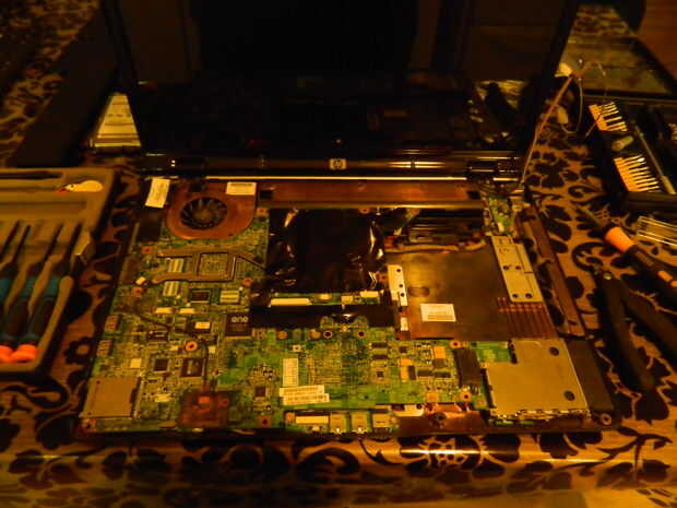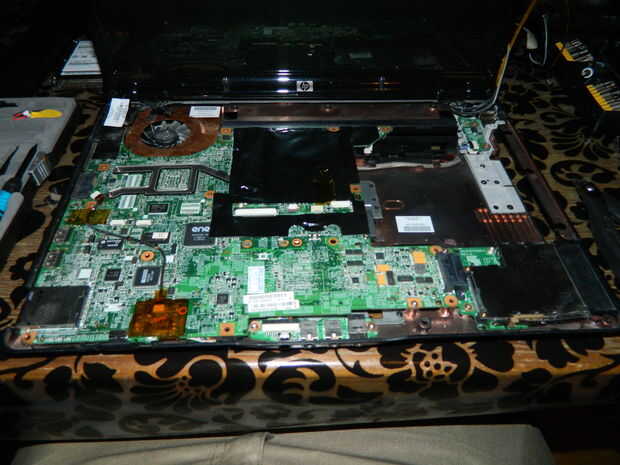 Desmontar el ordenador portátil. El problema está en la placa base y tiene que ir al horno. Tan naturalmente tienes que sacar de la computadora portátil. Esto se hace simplemente quitando los tornillos de la parte inferior, debajo del teclado y sobre la placa base. Cada portátil tiene su propia manera para esto. Así que si el tuyo no es el mismo portátil como el portátil en la imagen, usa Google para encontrar un buen desmontaje fotos y empezar desde allí.