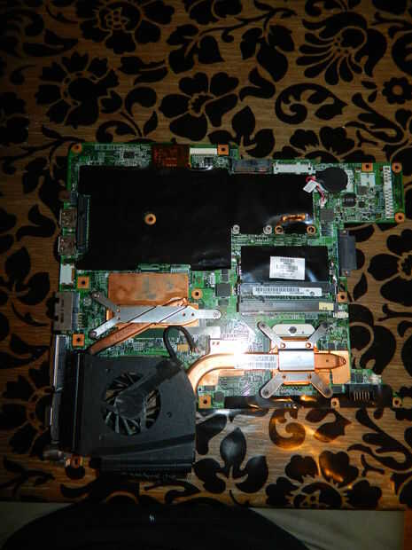 Después de la placa base es liberada de la caja del ordenador portátil, retire el disipador de calor de él.