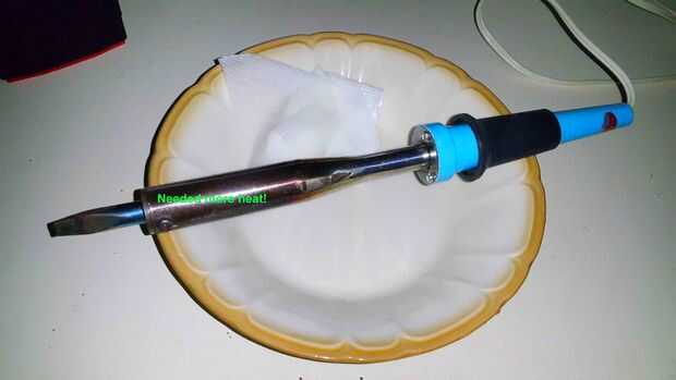 Por suerte tuve un gato de repuesto conector macho de un recuperado arrancador. Esto soldamos a los cables terminales expuestos. Tuve que sacar mi soldador de 100 vatios para conseguir una articulación correcta para los alambres de gran calibre.