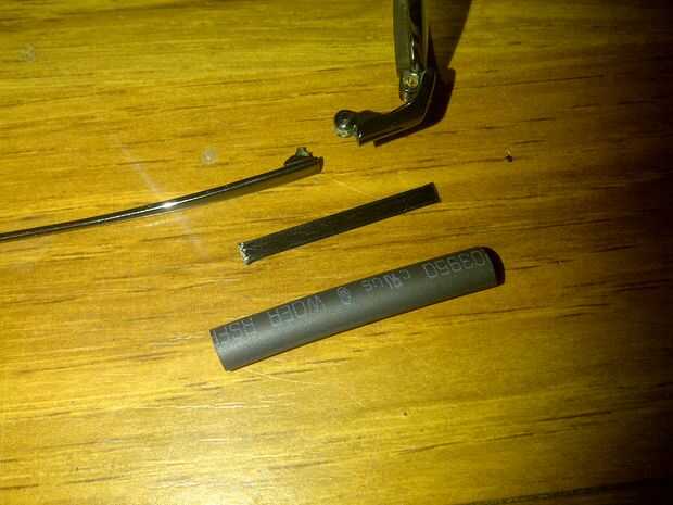 También corté un pedazo de la contracción de la tubería, un poco más largo (1.25") para cubrir dicha fibra de carbono. Ahora estamos listos para poner las cosas juntas.