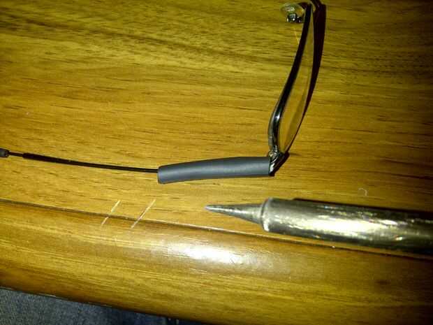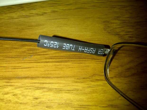 En primer lugar, deslice a la contracción de la tubería hasta el brazo. Si sus vasos súper pequeño oído sobre cosas (también conocido como consejos de templo), no es gran cosa. De lo contrario debe han resbalado en la contracción de la tubería antes de super pegado.