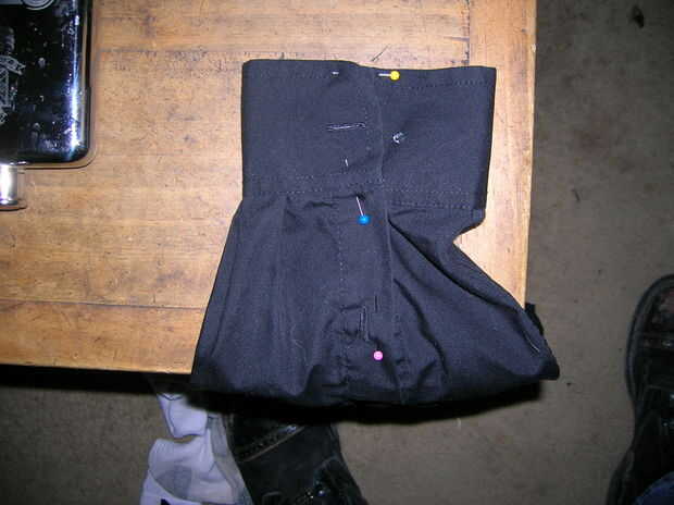 Una vez que tengas los bolsillos creados, ahora necesita coser las aletas de cuero que le dije no a tirar.