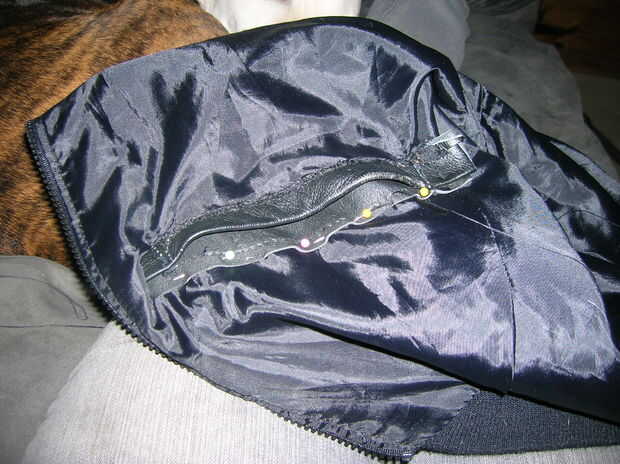 Ahora necesita añadir su interior bolsillos a su guarnición. Parte de mi forro era un satén como chaqueta de primavera me dado que yo nunca usaba.