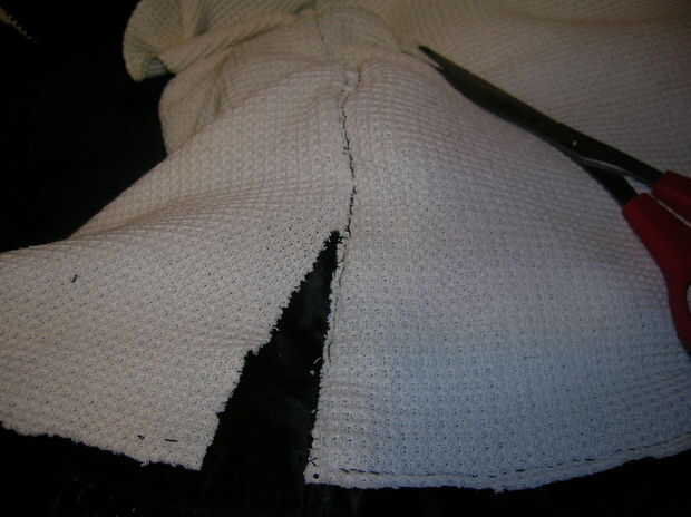 Acostado el térmico como posible en el piso, cortar en el centro en el frente en un estilo vertical en cuanto a hacer que parezca podría ser una chaqueta.