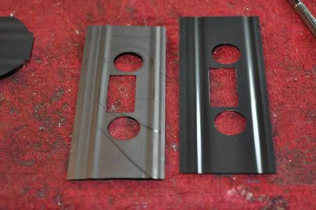 en la foto 2 hay un primer plano de una pequeña clavija plástica que la hoja de respaldo tiene que caber todo. Nota hay una V corta en la hoja de respaldo. al intercambio de hojas de una cinta a otra, ten en cuenta que puede tener que ver recorte un poco para que funcione.