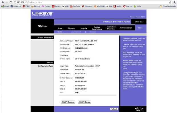 4. Desplácese hasta la ficha que muestra el estado actual del router. Debe mostrar un número de diferentes direcciones IP y nombres de dominio.