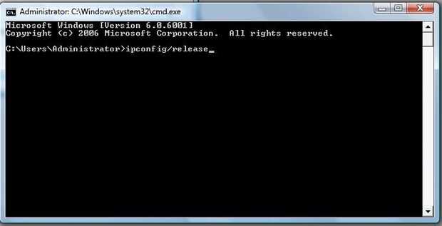 3. Escriba en el símbolo del sistema "ipconfig/release" y espere unos segundos.