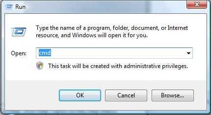 2. Abra el símbolo del sistema mediante el menú "Ejecutar" (tecla de Windows + R si no está en el menú de inicio), escribe "cmd"