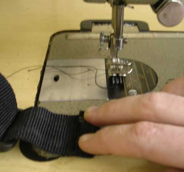 Doble el extremo de la correa hacia abajo y lo coser en línea recta. Nylon se separa fácilmente para que funcione cualquier máquina de coser básica.