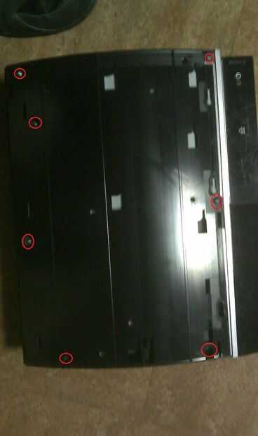 12. localizar los siete tornillos que sujetan la cubierta a la consola. (un círculo rojo)