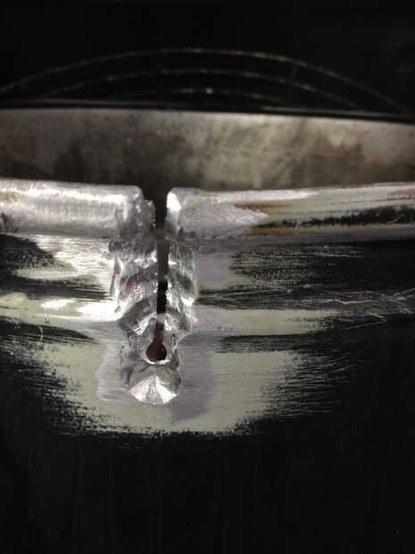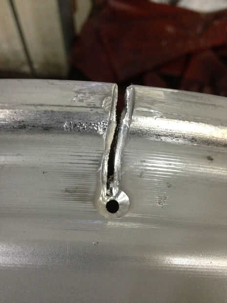 Entonces tenemos que romper la capa superficial con una lijadora de archivo y o cinturón gruesa [sólo utilizo un archivo y papel de esmeril grueso] aluminio soldadura es quisquilloso y todo tiene que ser pintura, grasa y aceite libre!!!!!! especialmente nuestro Crack!